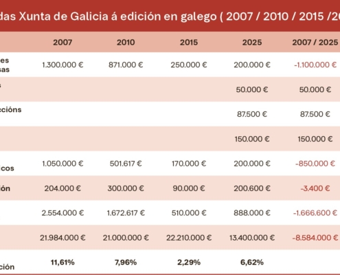 A situación crítica da edición galega, que perdeu nunha década o 39,05 % da súa facturación, non se explica sen sumar…