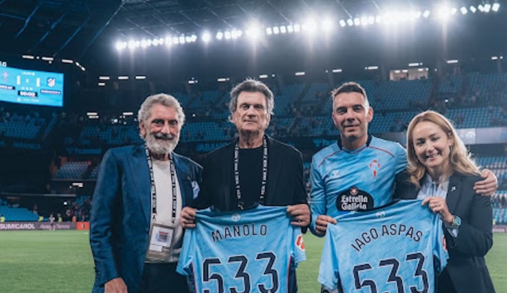 Ao remate do empate co Atlético de Madrid, a familia Mouriño expresou o recoñecemento do celtismo ás maiores lendas da súa canteira: Manolo e Iago Aspas, cando o de Moaña remataba o seu encontro 533 como céltico, igualando a cifra acadada polo «gran capitán» celeste da década de 1970. Si, Manuel Rodríguez Alfonso «Manolo», o central que formou parella con Costas, membro da selección subcampioa europea sub-23 de 1969, o xogador que até agora máis veces vestira a camiseta celeste, desde que como promesa se incorporou aos 15 anos ao xuvenil, pasando logo polos cadros de 1ª e 2ª durante dezaseis tempadas consecutivas, dende a do seu debut, a 1966-1967, até derradeira, a 1981-1982, na que colgou as botas e recibiu unha homenaxe en Balaídos nun partido entre o Celta e a selección de Polonia, que preparaba a súa participación no Mundial 82, no que xogaría en Vigo contra Italia.