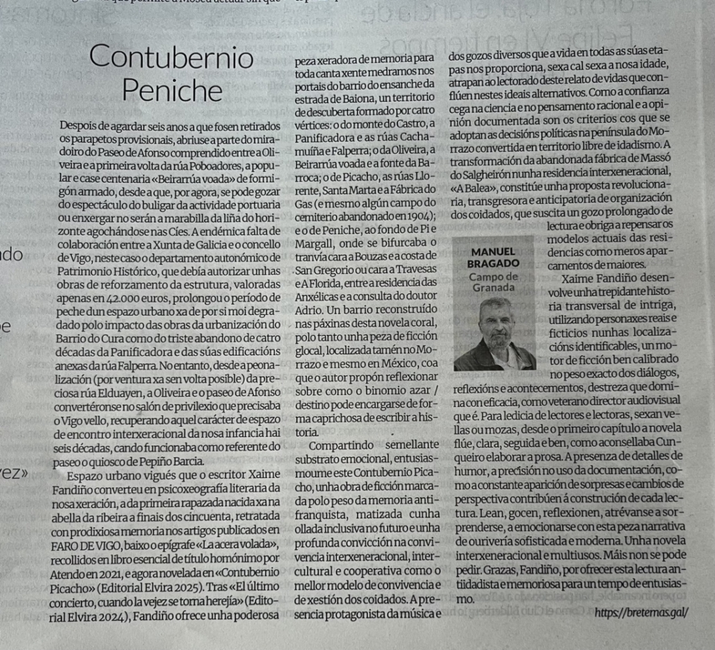 Dedico o artigo de Faro de Vigo á aparición de Contubernio Picacho (Editorial Elvira 2025) de Xaime Fandiño: