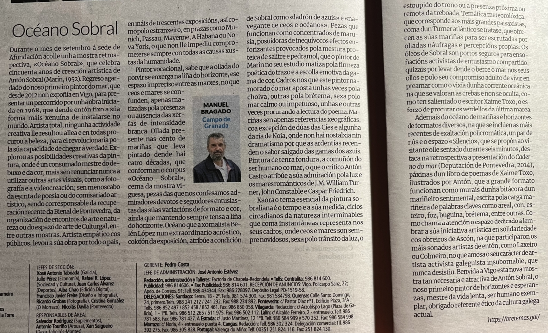 Dedico o artigo da semana en Faro de Vigo á exposición do pintor Antón Sobral na sede d’ Afundación: