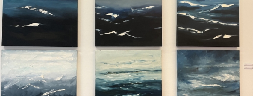 Pintor vocacional, sabe que a ollada do porvir se enxerga na liña do horizonte, ese espazo impreciso entre as marxes, no que ceos e mares se confunden, apenas matizadas pola presenza ou ausencia das xerfas de intensidade branca. Ollada presente nas cento de mariñas que leva pintado dende hai catro décadas, que conforman  o corpus «Océano Sobral», cerna da mostra viguesa, pezas das que nos confesamos admiradores devotos e seguidores entusiastas das súas variacións de formato e cor, aínda que mantendo sempre tensa a liña do horizonte. Océano que a xornalista Belén López nun extraordinario acróstico, colofón da exposición, atribúe a condición de Sobral como «ladrón de azuis» e «navegante de ceos e océanos». Pezas que funcionan como concentrados de marusía, posuidoras de inequívocos efectos euforizantes provocados pola mestura proteica de salitre e pedramol, que o pintor de Marín no seu estudio matiza pola firmeza poética do trazo e a escolla emotiva da gama de cor. Cadros nos que este pintor namorado do mar aposta unhas veces pola choiva, outras pola brétema, sexa polo mar calmo ou impetuoso, unhas e outras veces procurando a lectura do poema. Mariñas sen apenas referencias xeográficas, coa excepción de dúas das Cíes e algunha da ría de Noia, onde non hai nostalxia nin dramatismo por que as ardentías recenden o sabor salgado das gamas dos azuis. Pintura de tenra fondura, a comuñón do ser humano co mar, o que o crítico Antón Castro atribúe a súa admiración pola luz e os mares románticos de J.M. William Turner, John Constable e Caspar Friedrich.