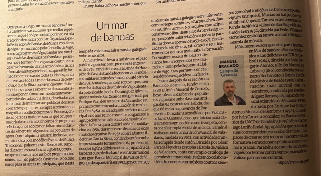 Dedico o artigo da semana en Faro de Vigo ao programa «Vigo, un mar de bandas»: