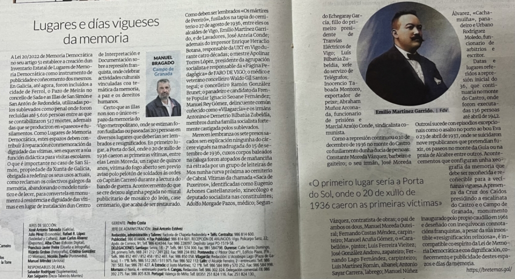 Dedico o artigo da semana en Faro de Vigo ao caso vigués do inventario de lugares da memoria: