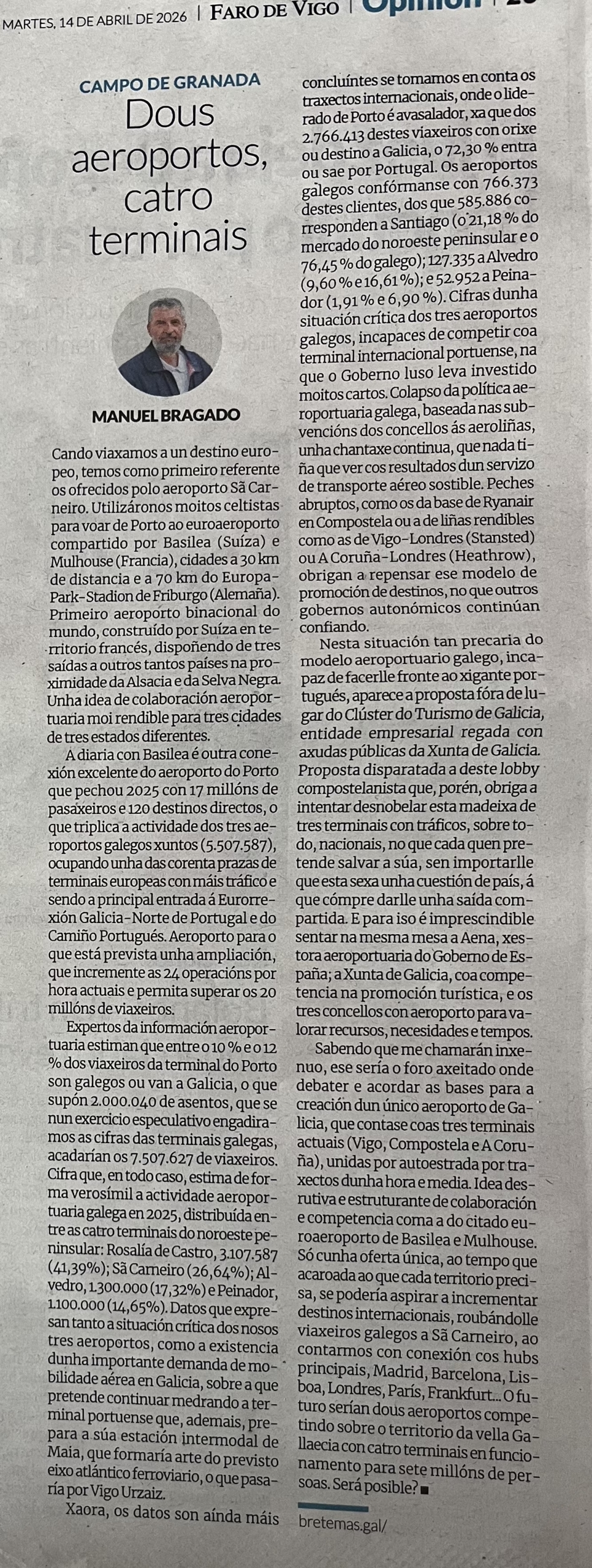 Dedico o artigo da semana en Faro de Vigo a situación aeroportuaria en Galicia: