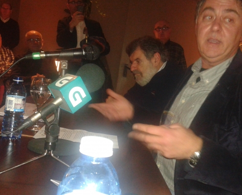 Máis dun cento de persoas xuntáronse no café Airas Nunes de Compostela para arroupar a Manuel Portas…