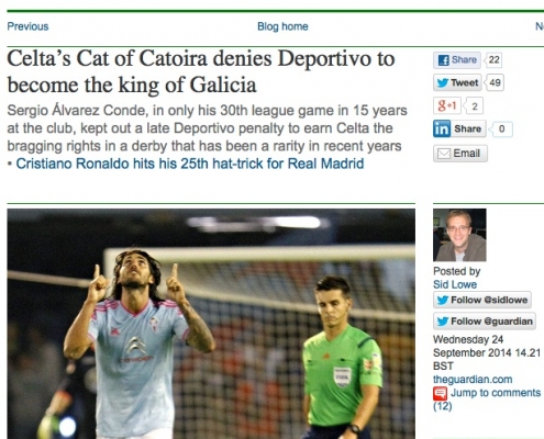 Quedei abraiado co seguemento que The Guardian fixo do noso derbi. A completisima crónica do xornalista…