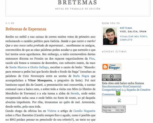 Onte estas brétemas chegaron ao seu noveno aniversario. Dende aquela primeira anotación do 3 de xaneiro…