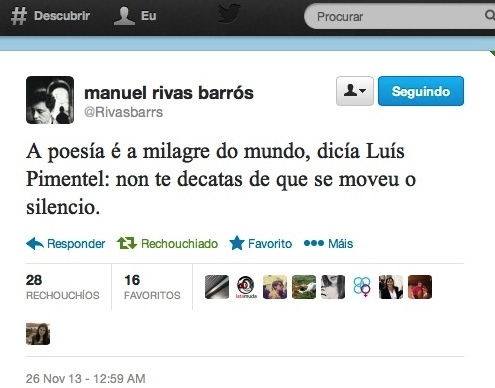 No seu primeiro día en Twitter Manuel Rivas superou o milleiro de seguidores. Coincidiu esa exitosa saida…