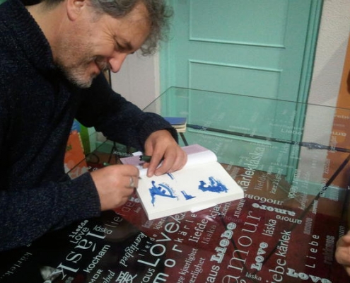 Acompañamos a Rivas en Ourense. Primeiro asinou exemplares na renovada Libraría Torga, hoxe tamén café…