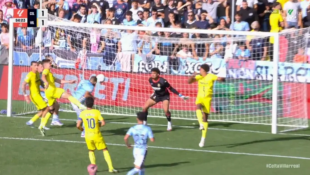 Mágoa que tanto xogo e posesión celeste non se concretasen no marcador. Sen embargo, o conseguiron os visitantes no 53’, grazas a unha fermosa combinación na frontal de Etta Eyong que de taco deixou só ao seu compañeiro Pépé, para que marcase con facilidade. Co marcador adverso, os de Giráldez nin apoucharon nin perderon a paciencia nas axudas defensivas, cando os amarelos foron máis temibles. Secasí a entrada de Borja Iglesias e Moriba, coas que Claudio pretendía recuperar verticalidade, levaron aos groguets a acumular dúas liñas, moi difíciles de rebentar. Xaora, os célticos nunca perderon a confianza en facelo. No 89’ estiveron a piques de conseguilo: un pase filtrado de Mingueza sobre Borja, que deixou con intelixencia sobre Moriba, que xutou de xeito que o balón raspelase a base do pao. O partido parecía entón perdido. Mais o colectivo celeste insistiu no tempo engadido. Un gran pase en diagonal de Manu Fernández sobre Javi Rueda permitiu que o malagueño cabecease sobre a área pequena, onde apareceu Borja que de forma maxistral superou de cabeza, por fin, ao meta de Luiz Junior. Un fermoso gol de fabricación colectiva, que fixaba un merecidísimo empate nunha tarde de fútbol marabilloso. Certo é que a puntuación do Celta neste arrinque de agosto non é completamente satisfactoria (apenas 3 puntos de 12 posibles) nin tampouco a produción de gol, porén o xogo colectivo exhibido nestes tres empates aventura que os de Claudio competirán coma fixeron na liga pasada.
