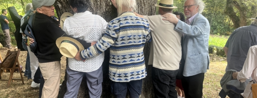 Carballo de Padroso que deita sombra e agarimo, como a que noutrora precisaban os druídas para os seus rituais, a todas aquelas persoas que en asemblea poética aberta procuran o seu acubillo, tamén os efectos de serenidade e acougo que ampara. Amizades de Bieito que compartimos a crenza fundamentada de que abrazar o carballo de Padroso constitúe unha necesaria tarefa colectiva que proporciona o agasallo de impregnarse coa enerxía centenaria acumulada na súa cerna, o que provoca un entusiasmo contaxioso perdurable, entre outros beneficios espirituais e corporais.